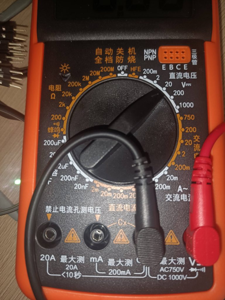 首先准备好电表,黑色的是接COM处,红色笔只要接电压档就好,可以用来测电阻的