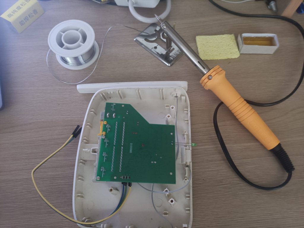 然后最好要有那种塑料板,以防锡掉到桌子上了,不过这里我直接使用路由器自己的塑料外壳,准备不周,但也不是不能用,哈哈