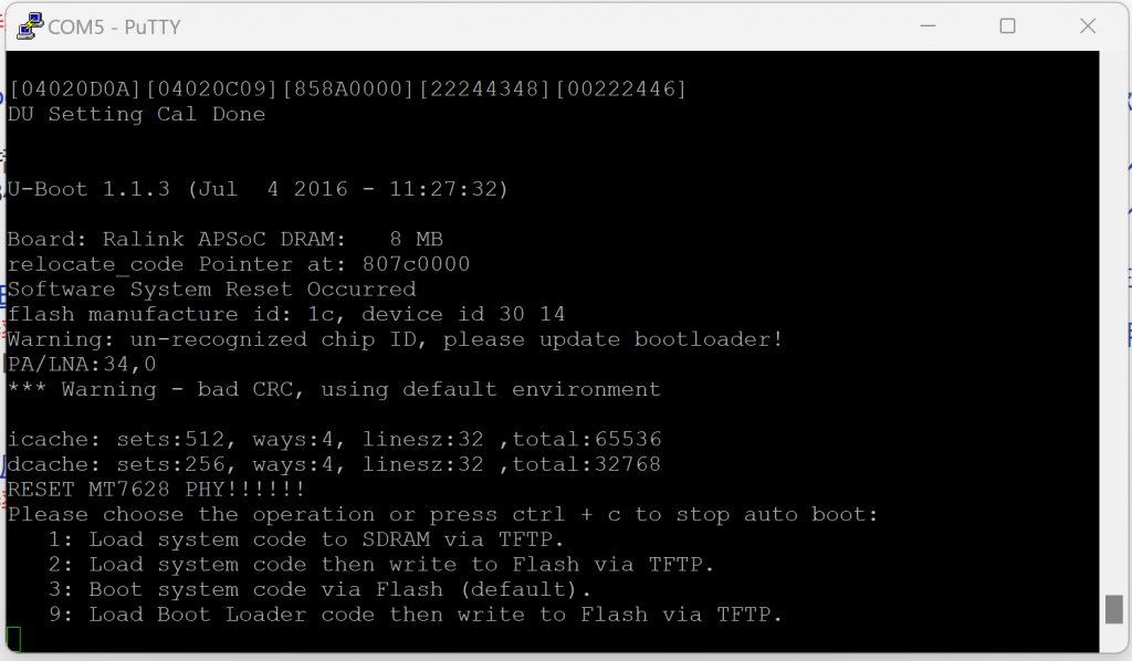 刚开始由于之前逆向固件得到了一些字符串,比如bootargs的波特率为115200,导致这里陷入了小的困局,怎么尝试都是乱码