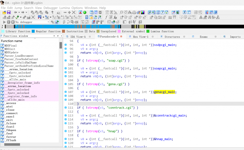 符号表完整,查看cgibin的main函数,发现有个genamain