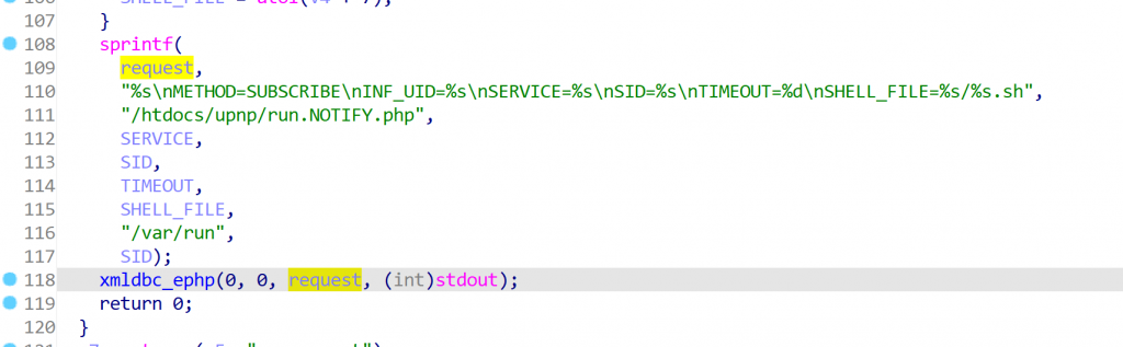 request是格式化字符串,内含METHOD、SUBSCRIBE、INF_UID、SERVICE、SID、TIMEOUT、SHELL_FILE,以及请求的php,送往xmldbc_ephp进行处理