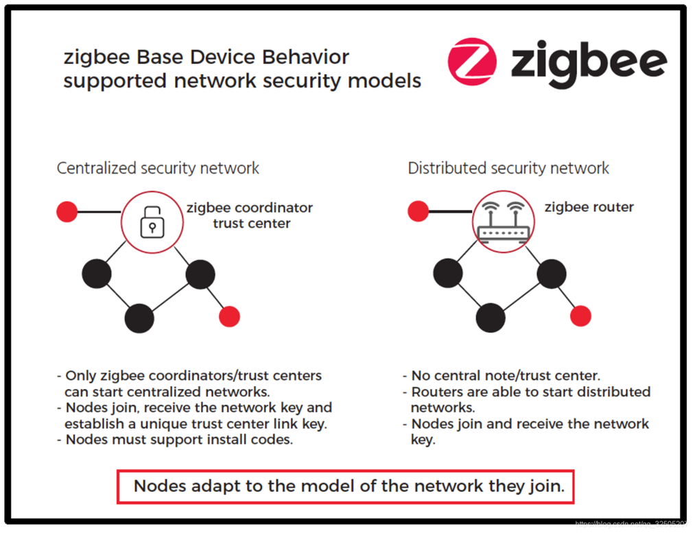 集中式安全模型提供了更高的安全性,因为集中管理所有安全策略和密钥分发和周期性的更新,能有效地防止密钥的重用、未经授权的设备加入网络,