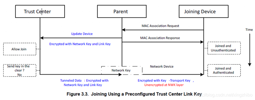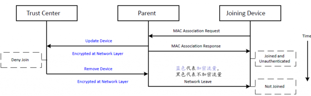 然后由Trust Center决定是否允许设备加入。如果允许该设备加入,Trust Center则向父节点发送Network Key