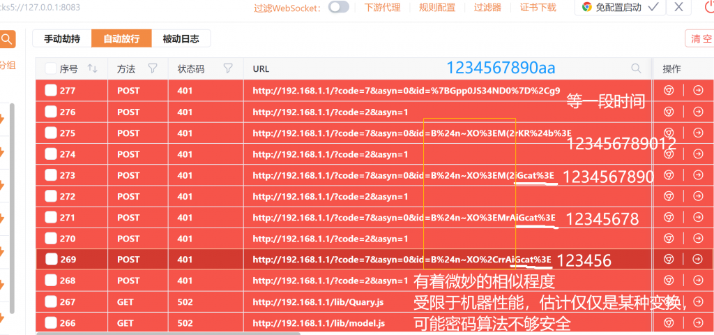 这里是唯一一个没有鉴权的操作点,而且我发现一个隐藏的安全问题,鉴权的参数似乎有迹可循?分别使用了不同的密码发起登录,其id生成规律似乎有一些固定模式