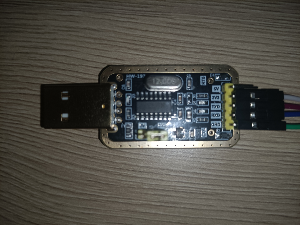 首先需要拆开设备,有些设备没有螺丝只能小心的沿边找到缝隙掰开,准备好电表、电焊笔,UART转USB板子,它长这样: